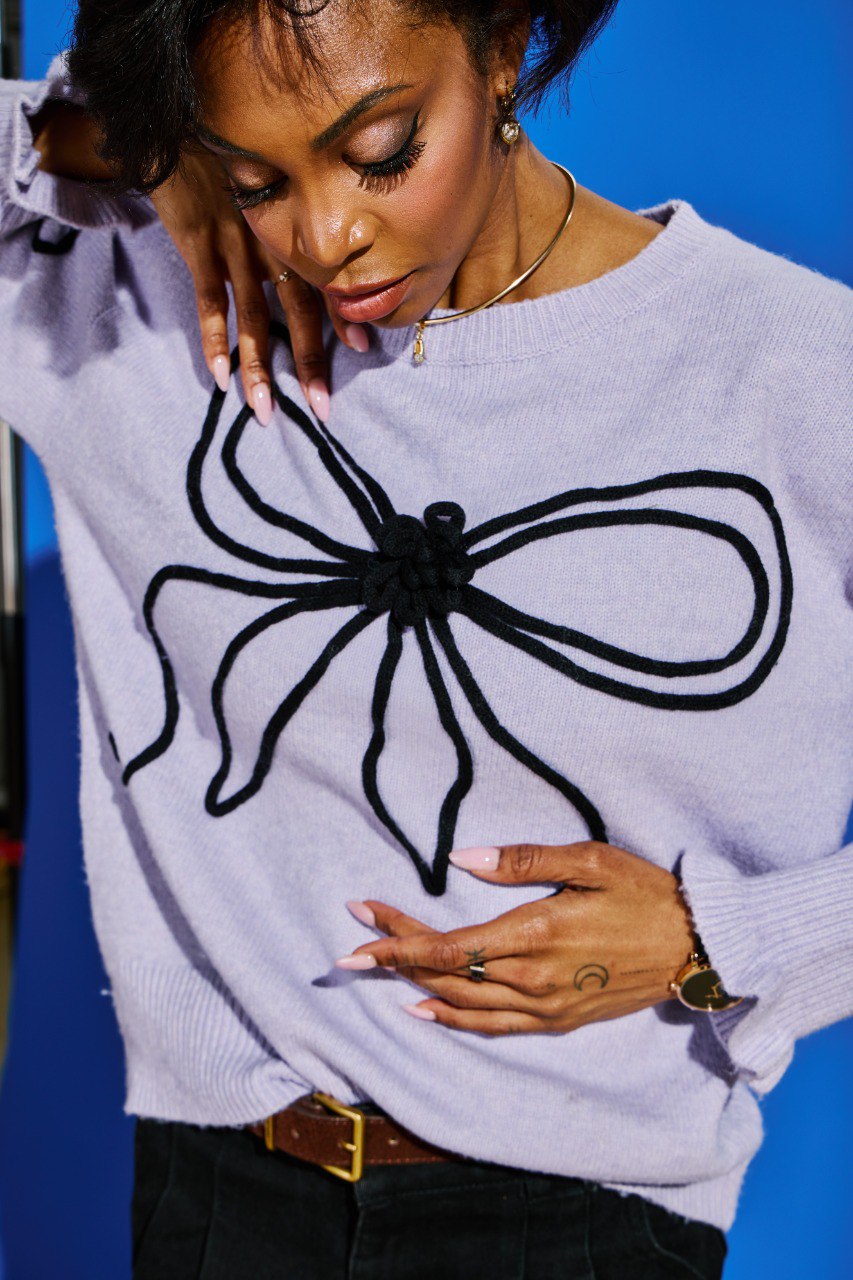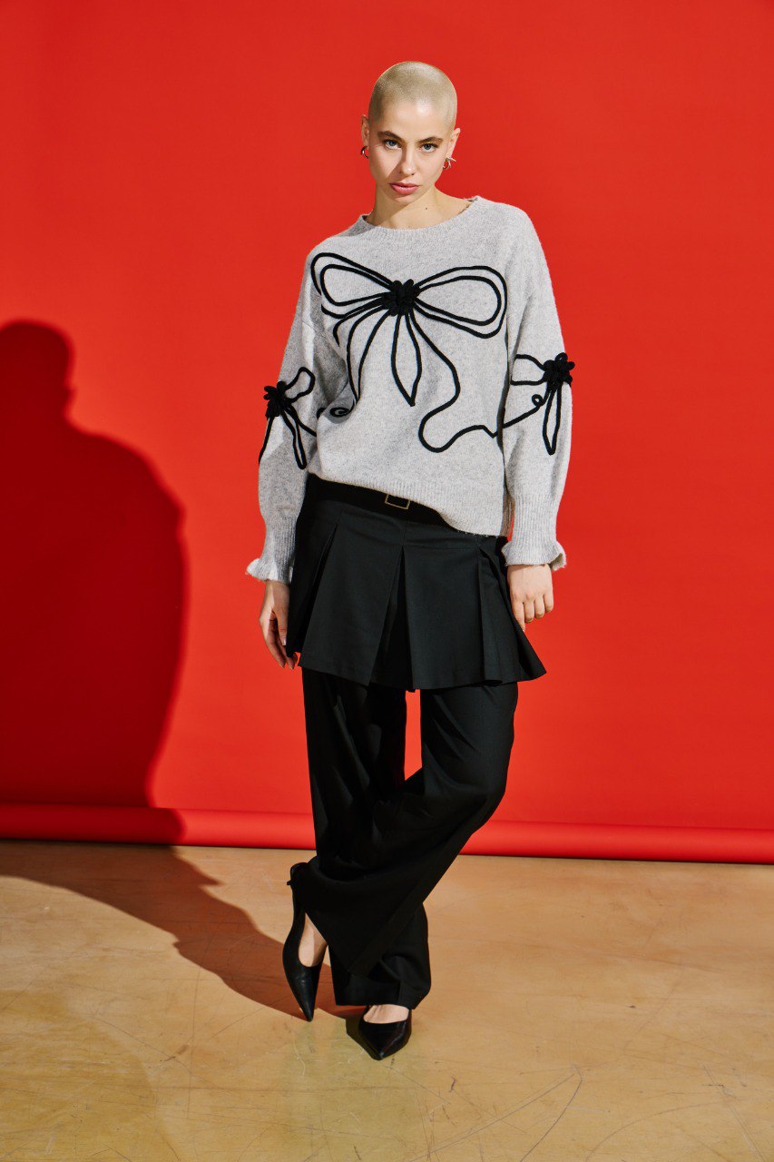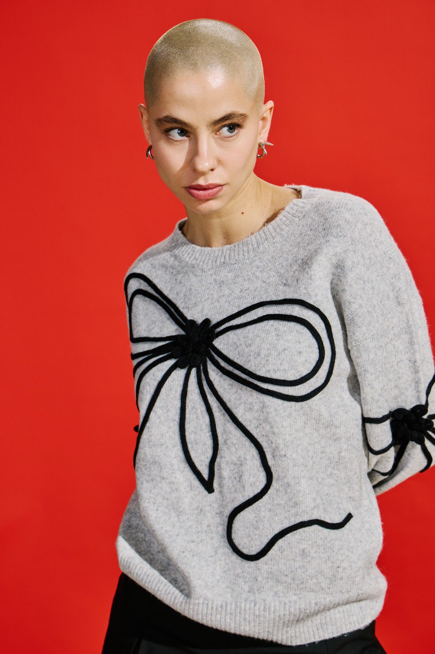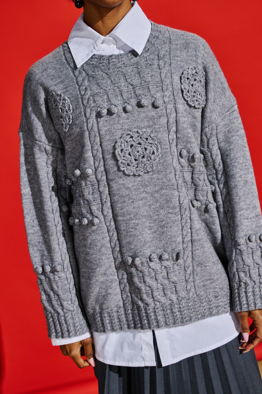 Нежность, уют и изящность в одной модели! Этот джемпер свободного кроя создан для тех, кто ценит комфорт, не жертвуя женственностью. Мягкая пряжа обволакивает невесомой лаской, а очаровательные бантики добавляют образу игривую нотку и романтичное очарование