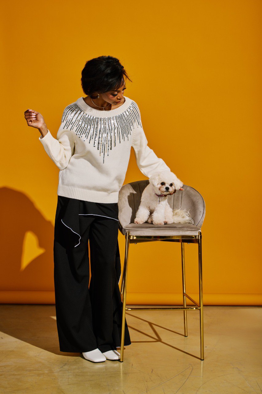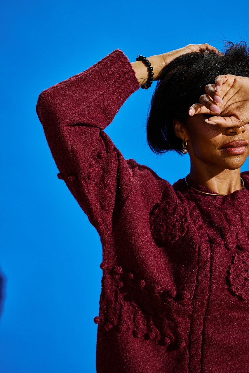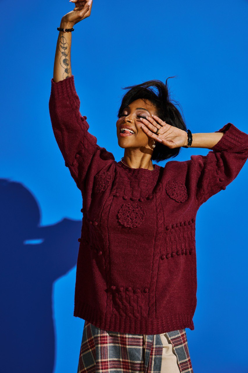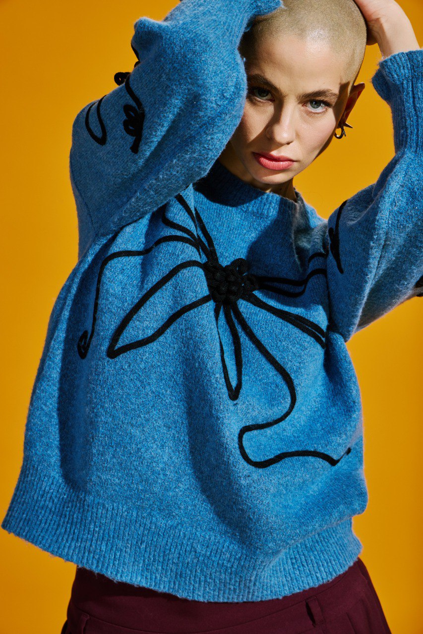 Джемпер для смелых и ярких! Он создан для тех, кто не боится быть в центре внимания. Пайетки, в зоне декольте, создают неповторимый эффект живого мерцания, напоминающий о бесконечных просторах космоса.