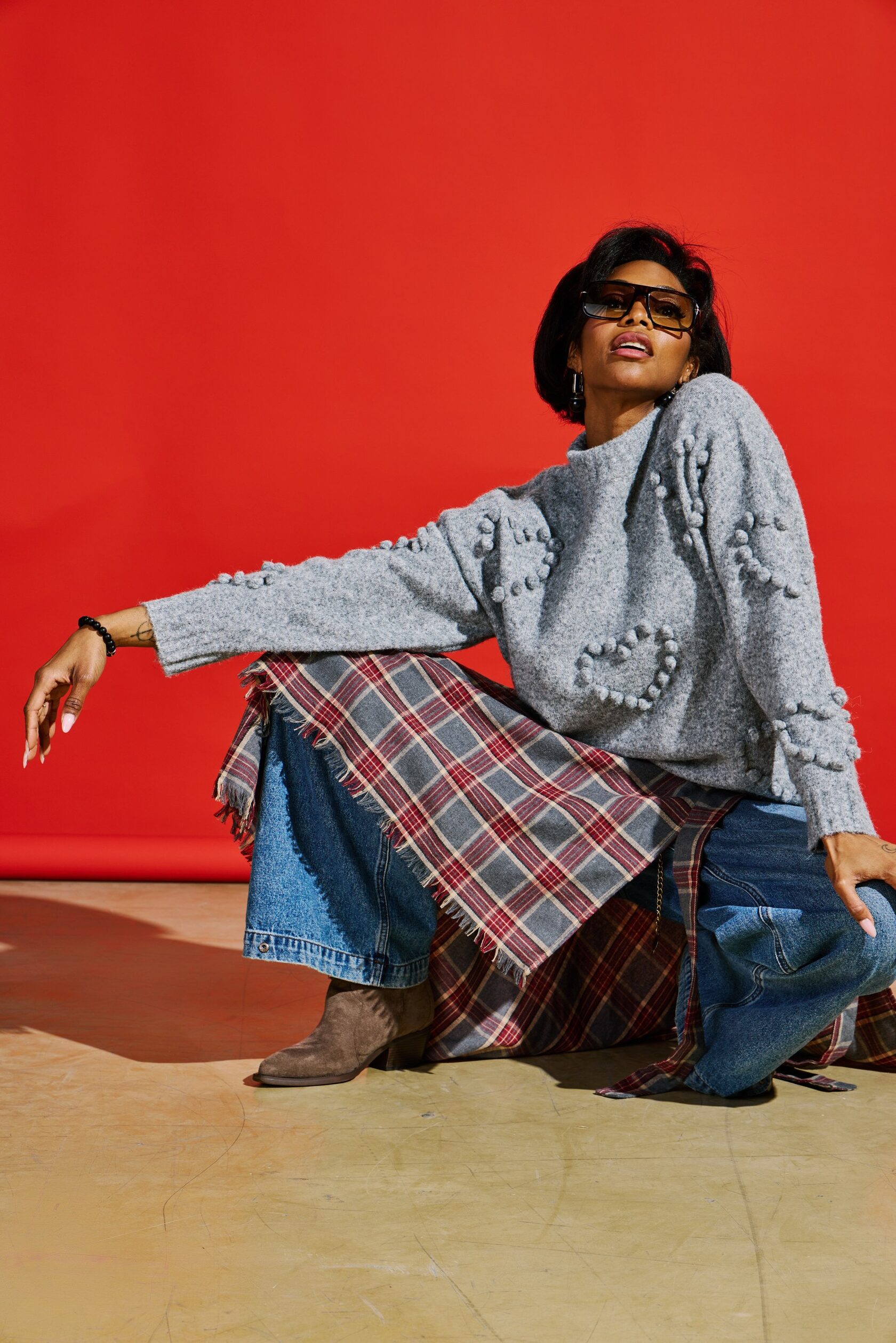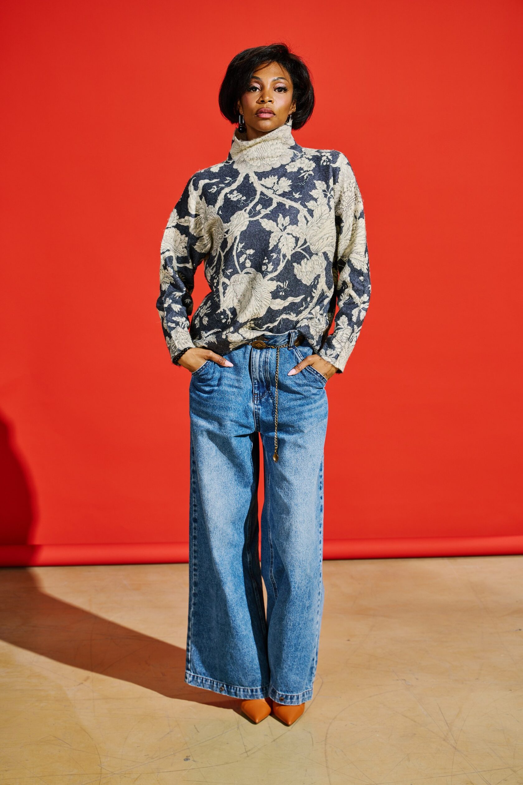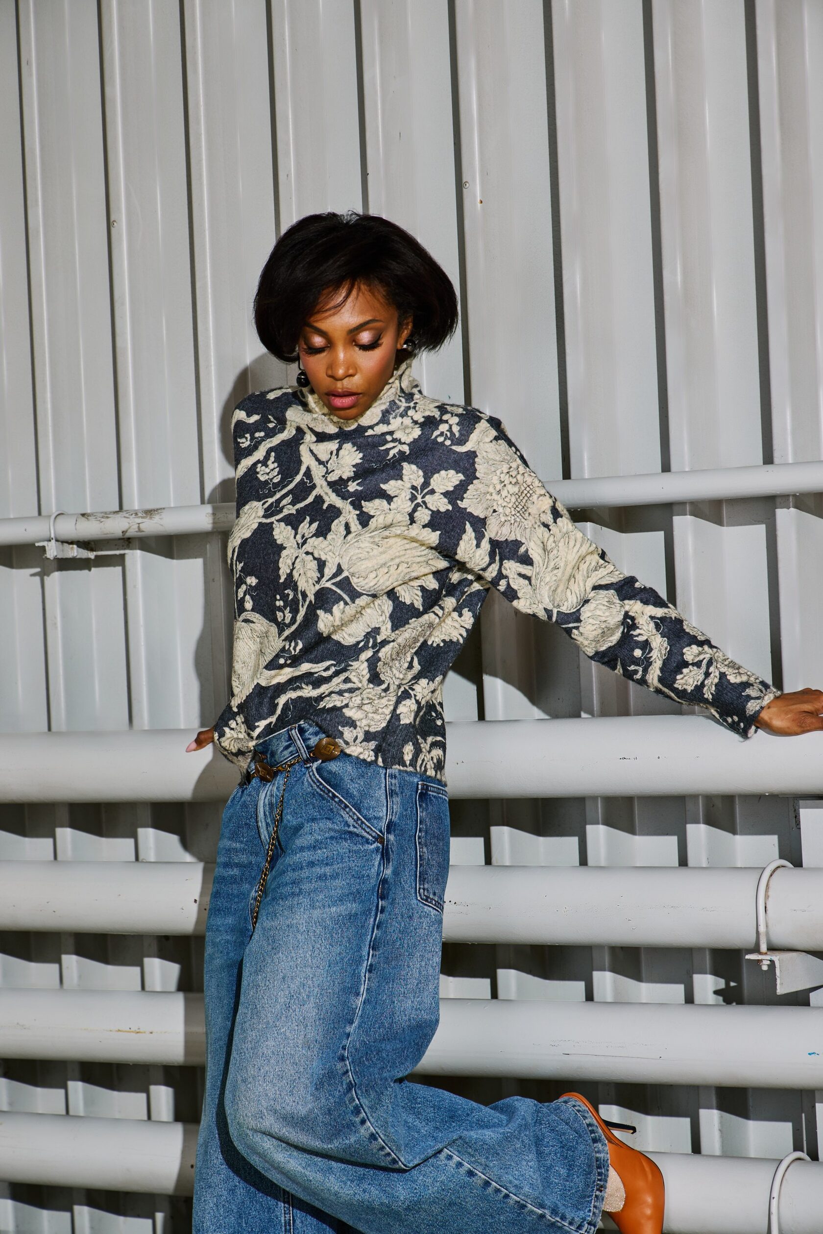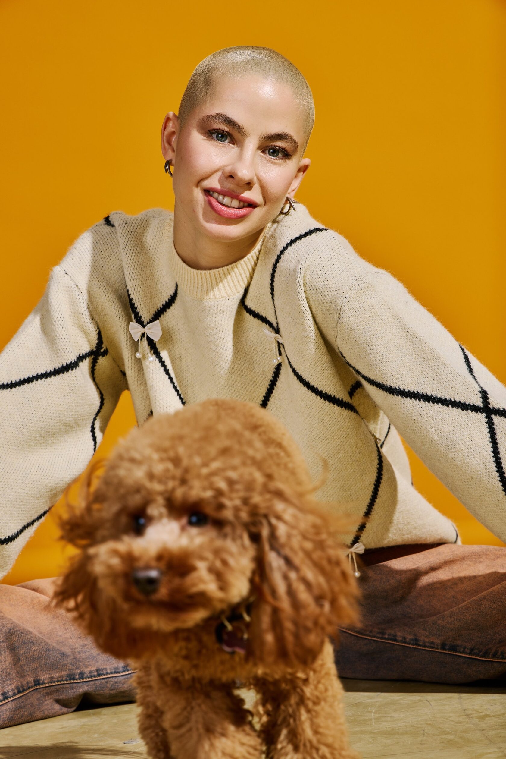 Джемпер свободного кроя обеспечивает абсолютный комфорт и свободу движений на весь день. Его образ дополняет объемный декоративный декор в виде бантиков в актуальном стиле cutecore, который сочетается с элементами безвременной классики в геометрических линиях.