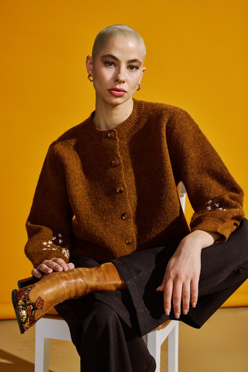 Это не просто кардиган, а многофункциональный предмет, который решит вопрос «Что надеть?». Классический дизайн с отложным воротником и застежкой на пуговицы позволяет интегрировать его в любой ваш образ.
