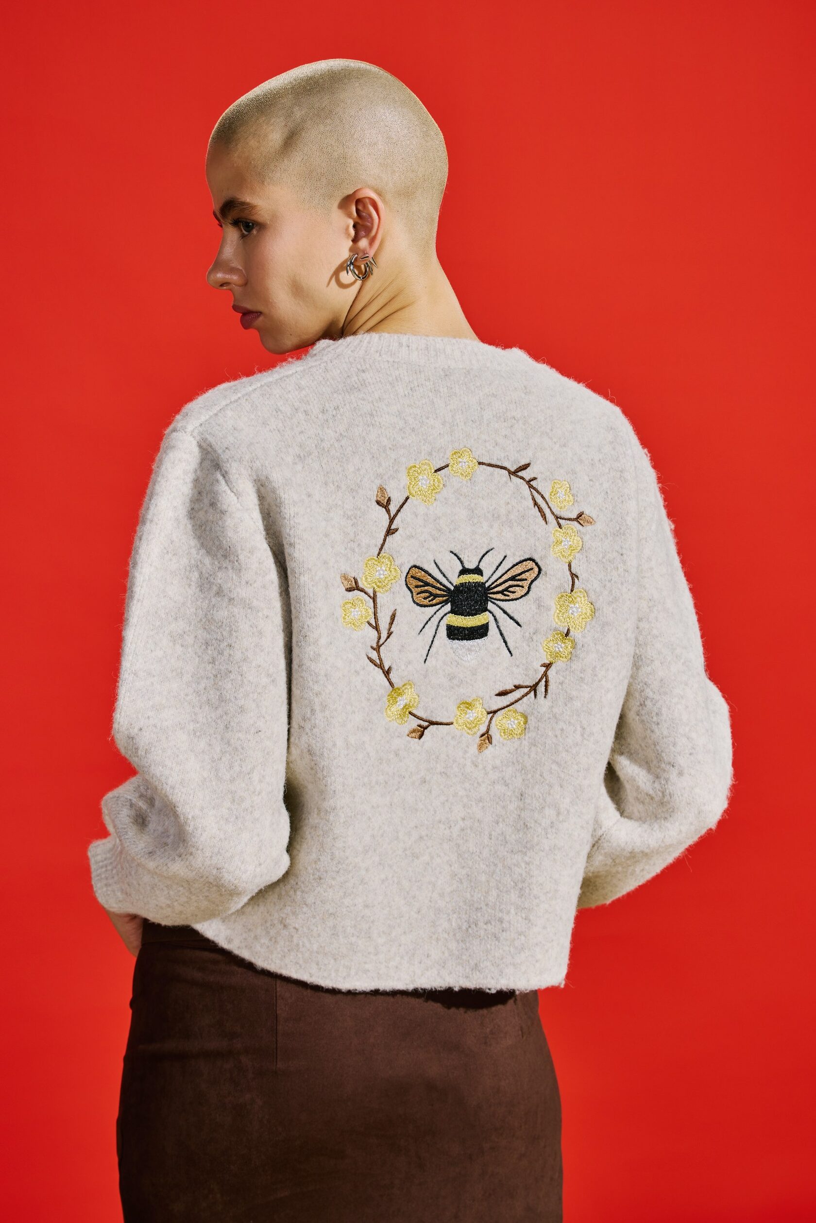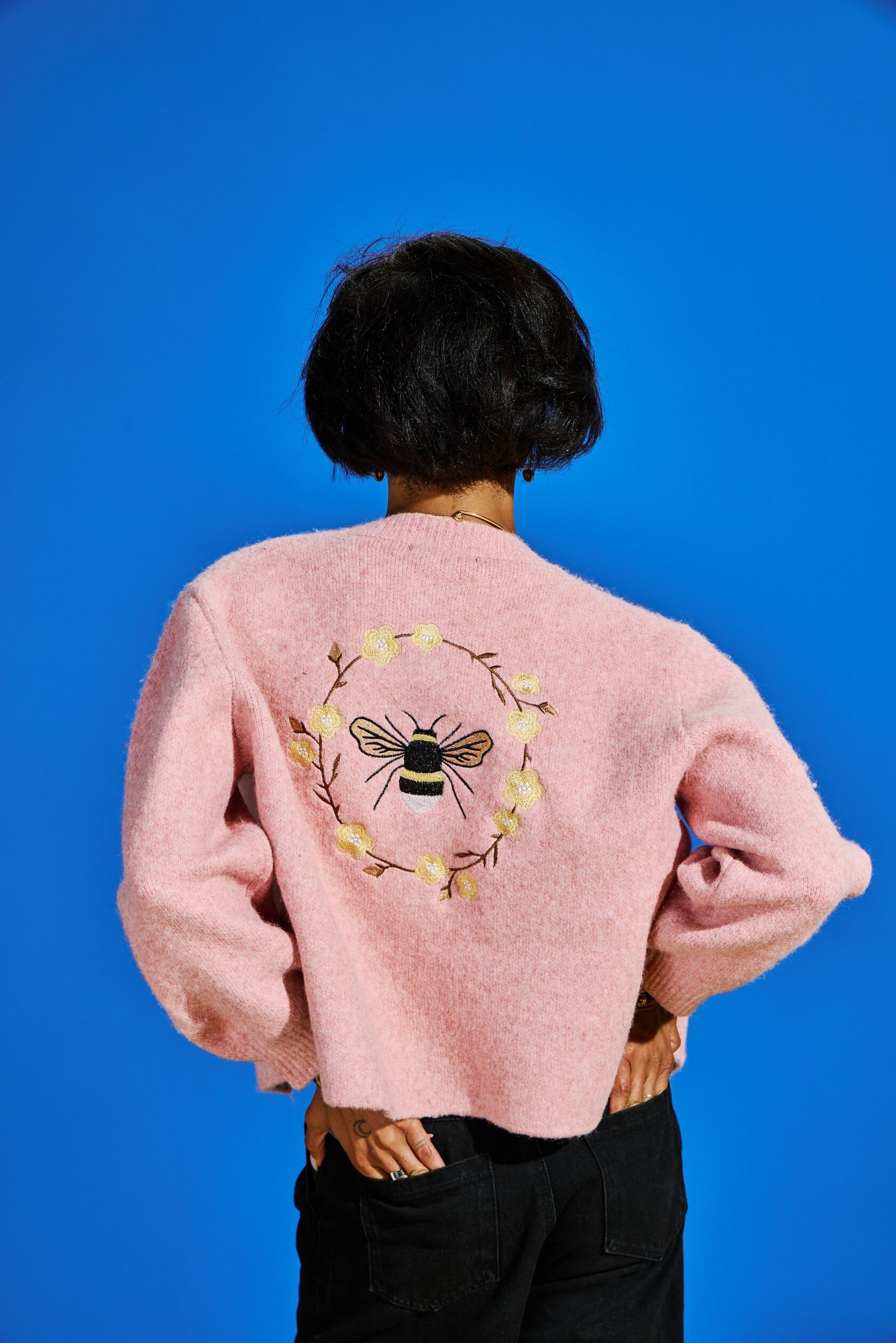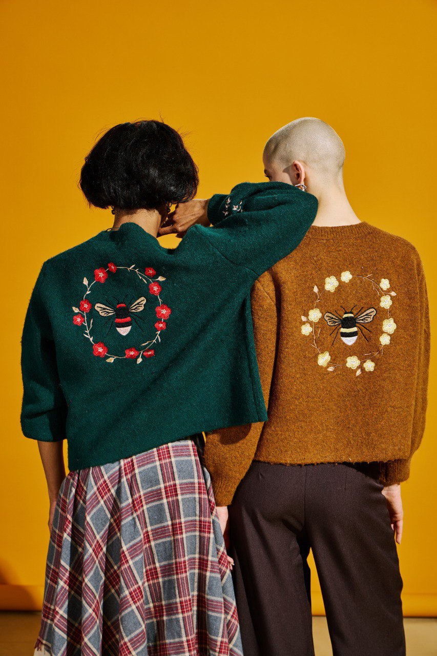 Для истинных ценителей уникального дизайна. Этот кардиган украшает изысканная вышивка золотыми нитями: ажурные ветви на рукавах и центральная композиция с цветком и пчелой по спинке.