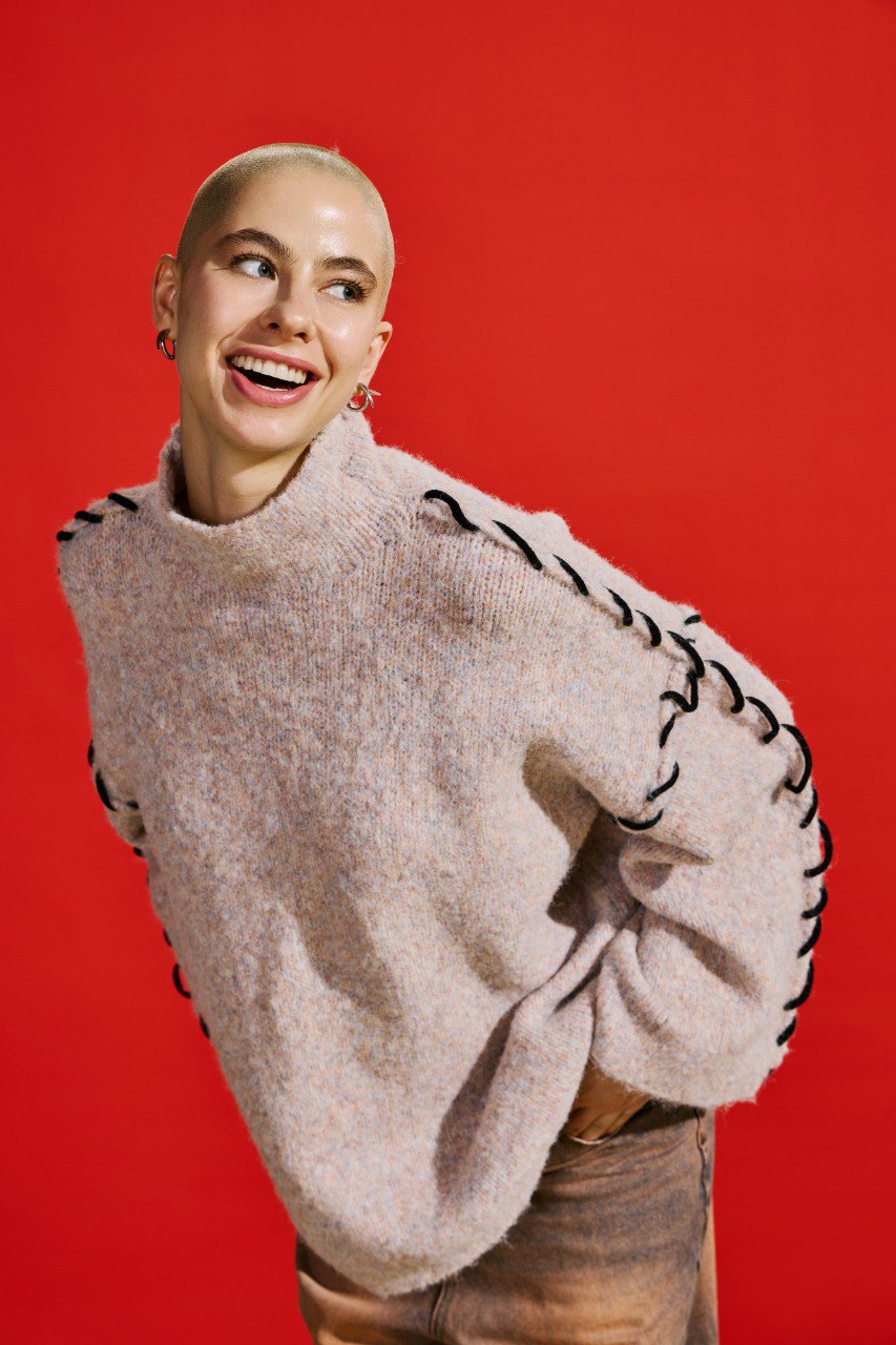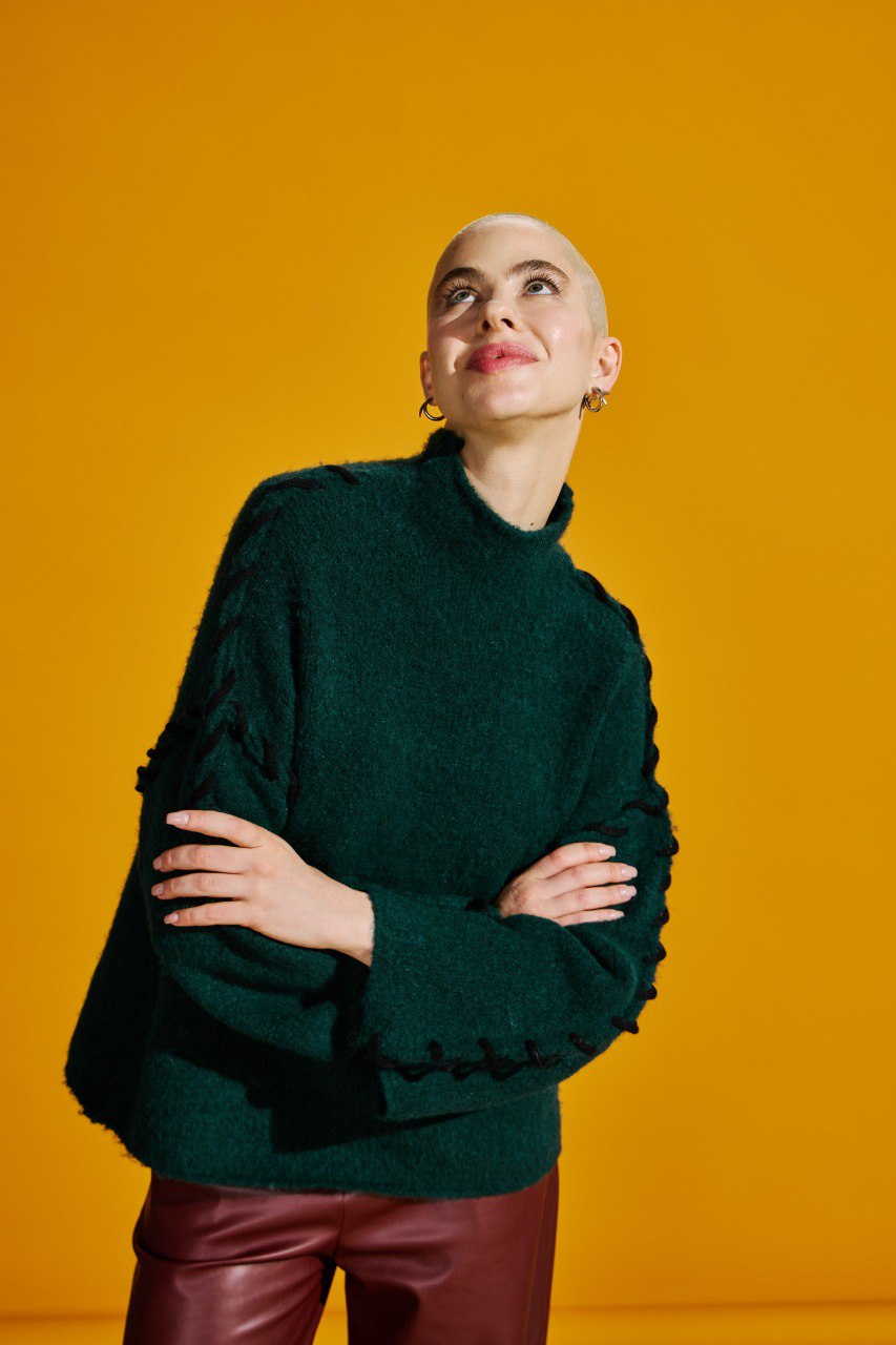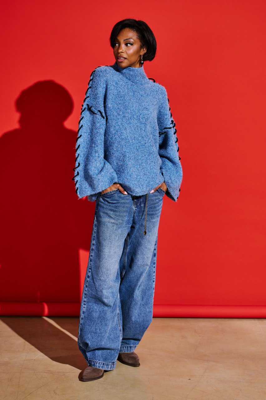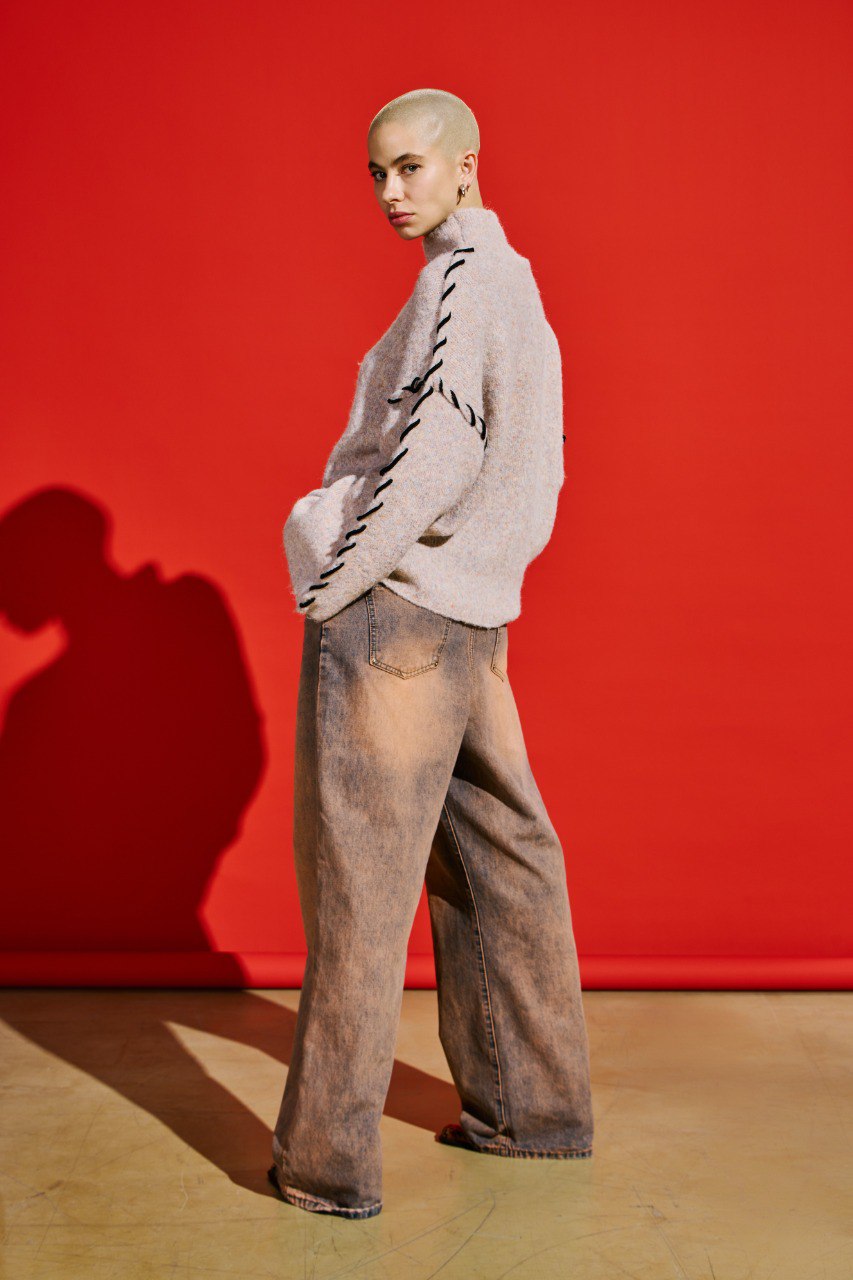 Этот джемпер — идеальный спутник прохладных дней. Его лаконичный дизайн делает его невероятно практичным, а деликатная шнуровка, выступающая в роли стильного акцента, сразу выделяет его среди обычных моделей. Идеально сочетается с брюками, юбками и джинсами.