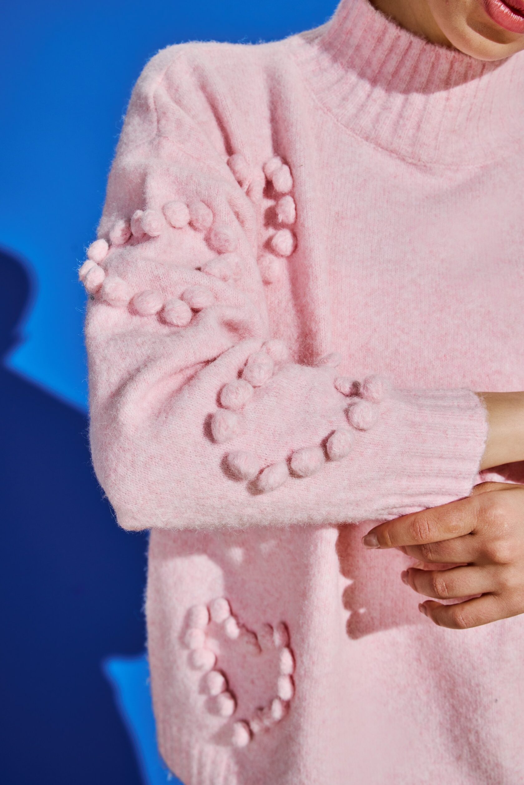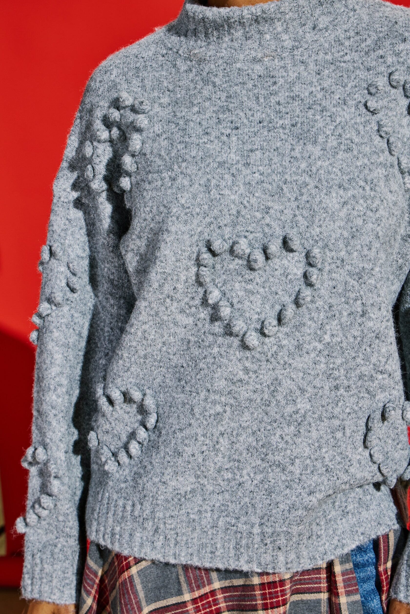 Джемпер из настоящей австралийской шерсти обладает невероятной мягкостью и превосходным качеством. Его свободный объёмный крой обеспечивает идеальную посадку. Романтичный и трендовый образ завершают изящные 3D-сердца, вышитые на изделии.